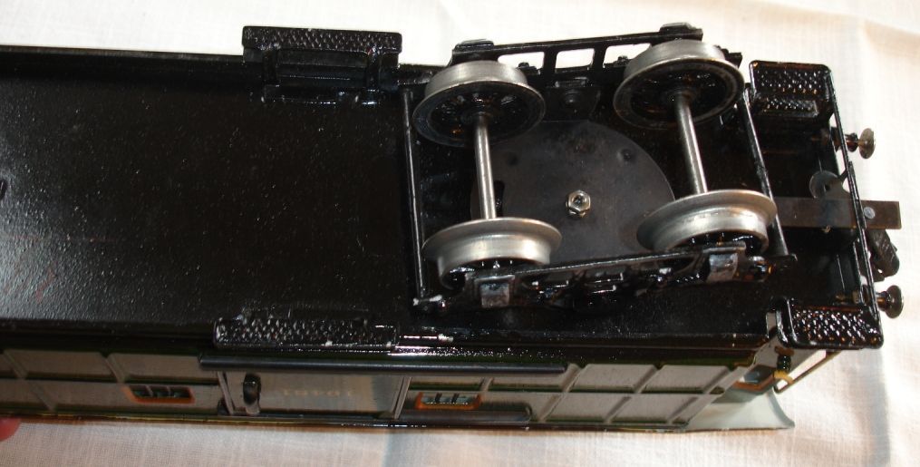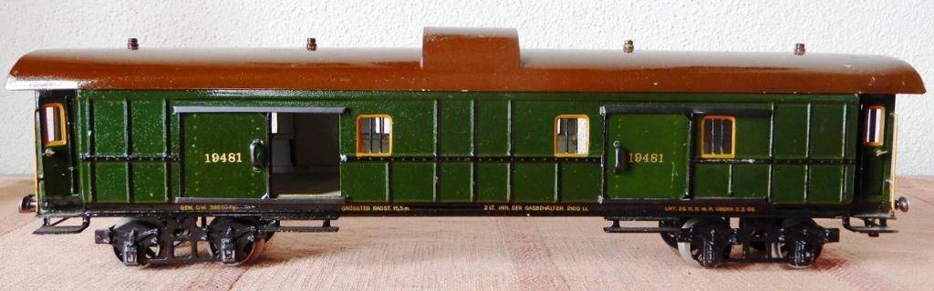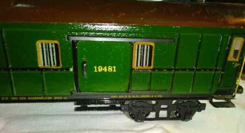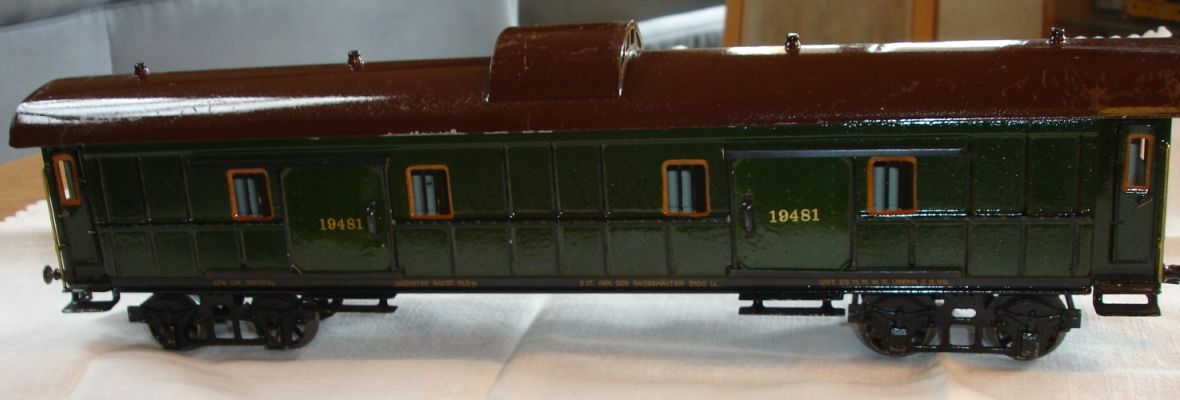 Modell: Gepäckwagen grün, 4-achsig, 19481, Länge 53 cm, alle Schiebetüren mit Griffen vorhanden, leicht bespielt,